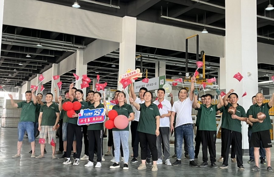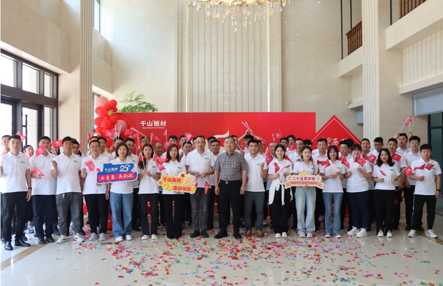 “祝千山25周年生日快樂”、“時尚潮派衣柜 就選千山板材”的嘹亮口號響徹活動現(xiàn)場,大家意氣風發(fā),自信昂揚,展現(xiàn)了千山人新時代踔厲奮進、拼搏進取的精神。