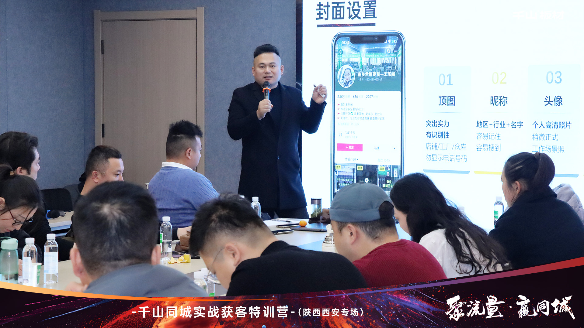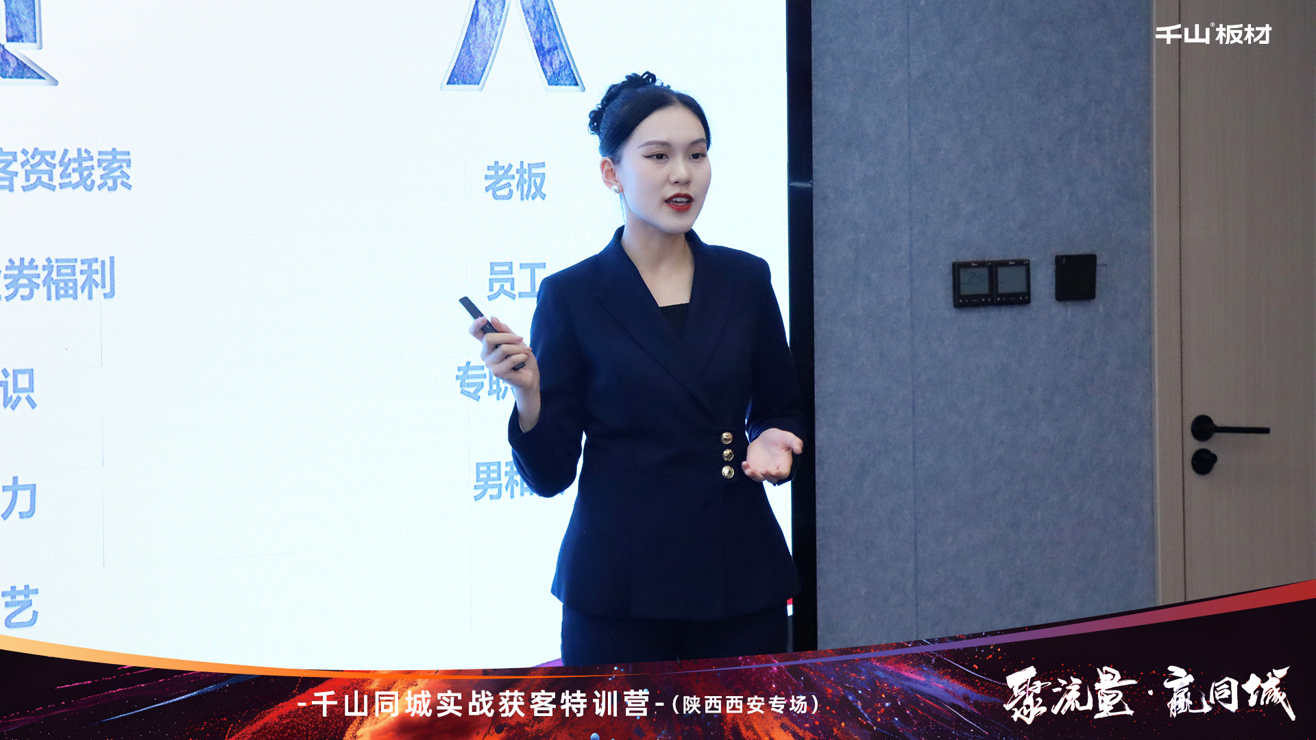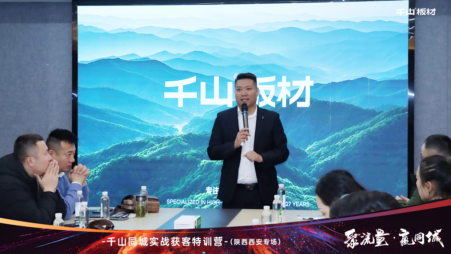 跟上新賽道風(fēng)向,拓展流量致勝渠道。活動(dòng)開(kāi)始,千山板材陜西倉(cāng)總經(jīng)理王國(guó)棟致辭。王總表示:面對(duì)新媒體發(fā)展浪潮,我們要轉(zhuǎn)變營(yíng)銷思維,積極布局抖音同城,打通線上的獲客轉(zhuǎn)化。