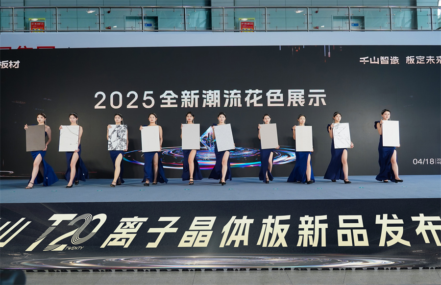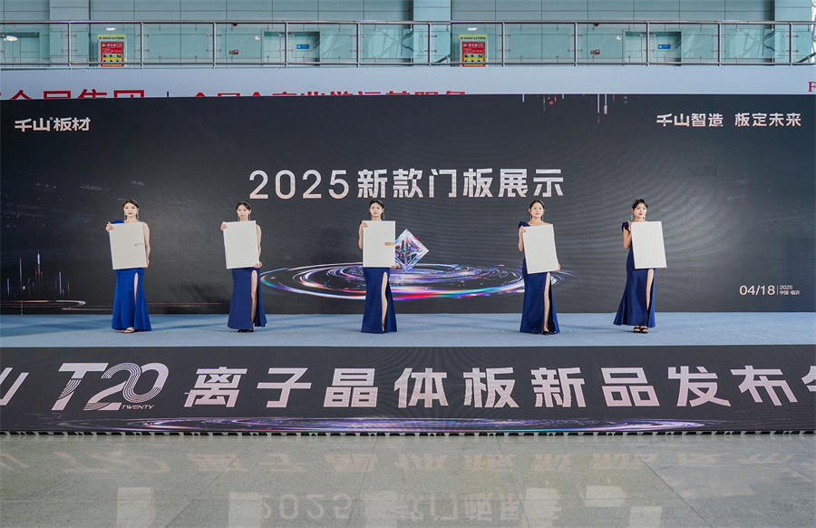 4月18日,中國(臨沂)全屋定制暨供應鏈展覽會在臨沂國際會展中心正式開幕。在1號館“千山智造 板定未來”的舞臺上,千山板材T20離子晶體板及2025新品花色重磅發布,以新產品、新工藝、新花色,為終端提供更有價值空間、更具競爭力的高端產品,助力消費者開啟高顏美家新體驗!