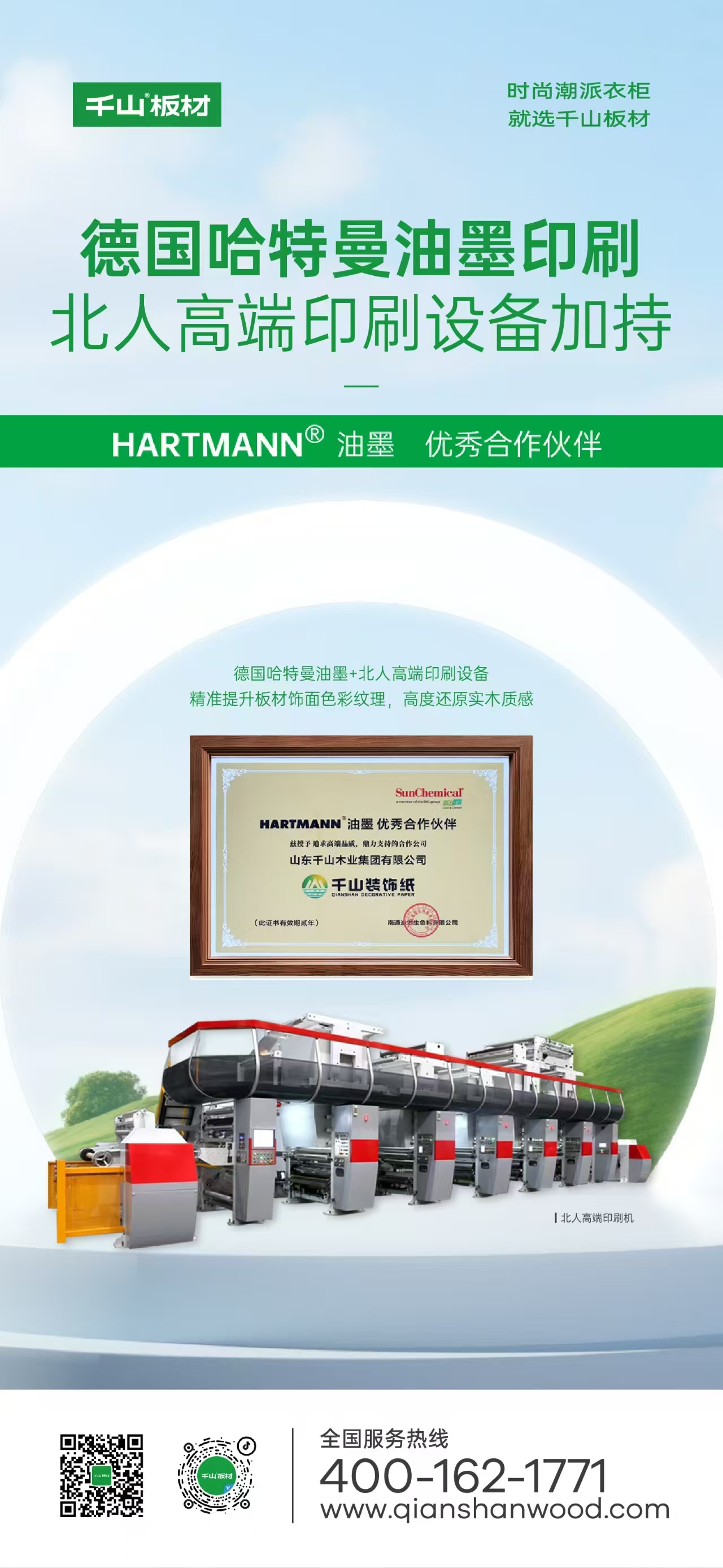 千山板材超強飾面采用一線夏王高壓底紙,德國哈特曼油墨印刷,北人高速印刷設備加持,紋理更清晰,色澤更持久,板材表面更加耐磨抗劃,經久耐用。