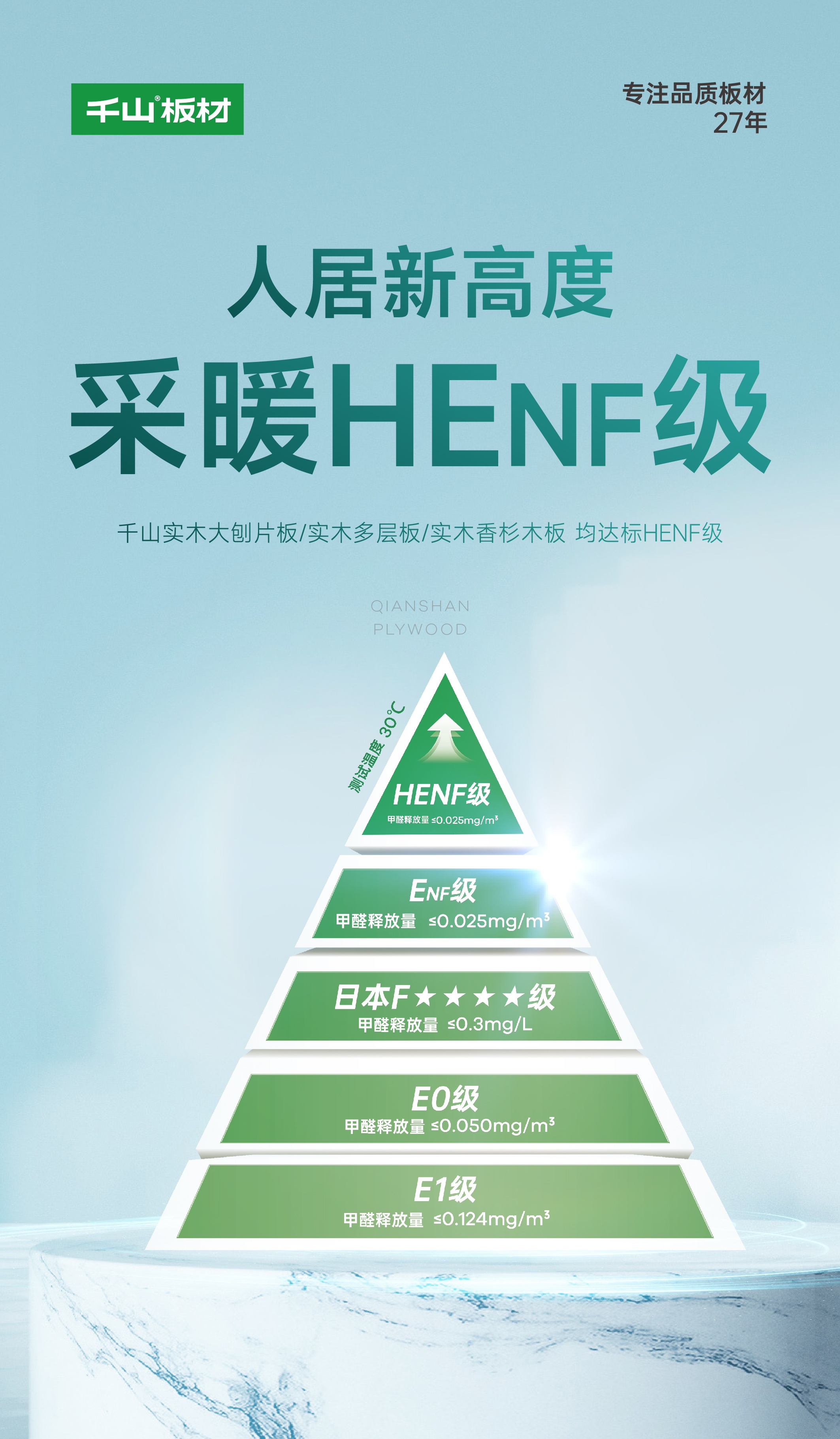 HEnf環(huán)保等級目前也是業(yè)內(nèi)天花板,相比新國標(biāo)甲醛釋放量,HEnf級板材在30度高溫檢測中甲醛釋放量更少,所以更適合使用在熱環(huán)境中。