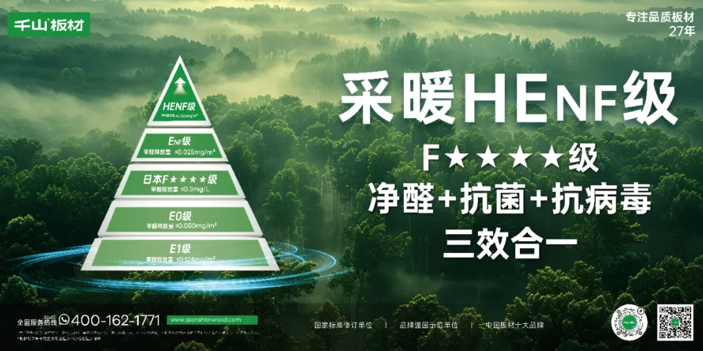 千山板材通過(guò)國(guó)標(biāo)ENF級(jí)和F4星雙環(huán)保檢測(cè),進(jìn)階HEnf采暖級(jí)環(huán)保標(biāo)準(zhǔn),占領(lǐng)“采暖無(wú)醛級(jí)”環(huán)保制高點(diǎn)。在滿足消費(fèi)者對(duì)產(chǎn)品的高品質(zhì)、高環(huán)保需求后,全面升級(jí)推出凈醛、抗菌、抗病毒三效合一的凈醛板,為消費(fèi)者打造高凈品質(zhì)生活。